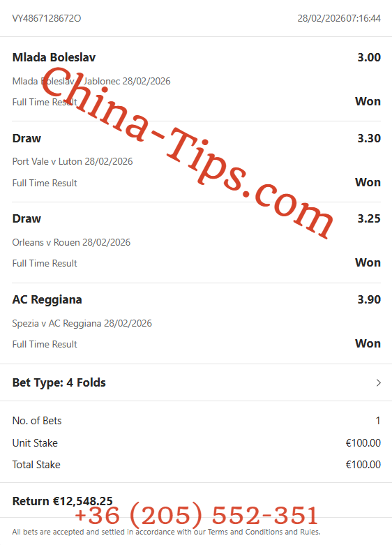 VIP fixed matches are only for few old members. With this matches you can’t lose but this matches we can’t sell on more people than 5. This matches only receive oldest costumers and most loyal.