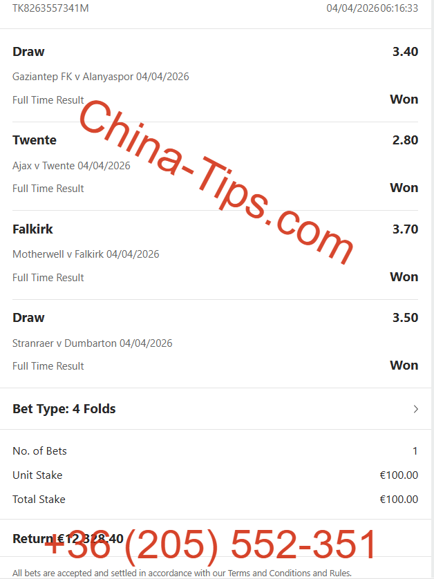 | 04/04/2026 | Stranraer vs Dumbarton | X | 3.50 | 1 – 1 |