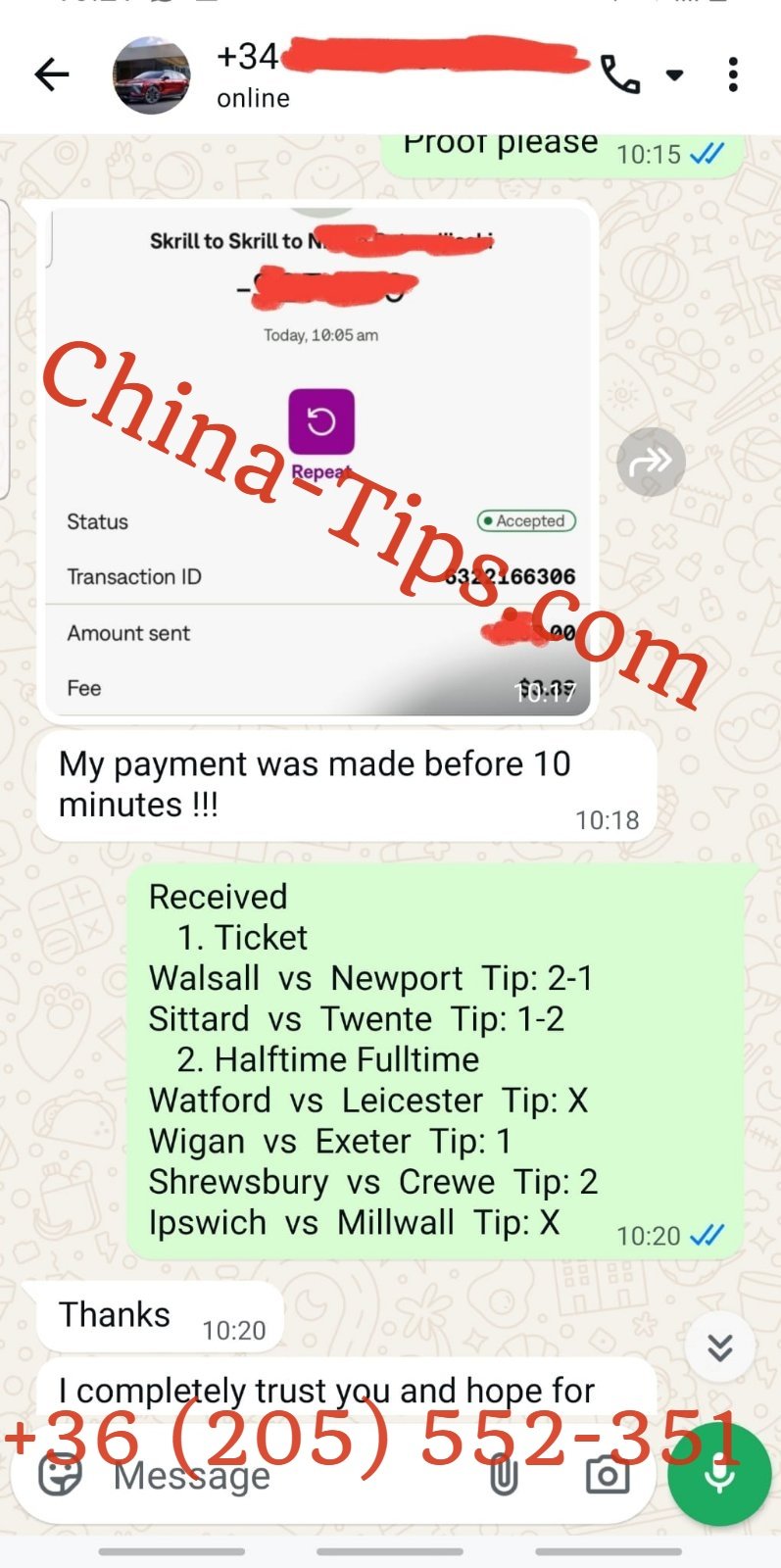 Official CHINA – TIPS Email : tipschina9@gmail.com