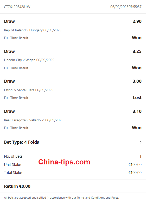 06/09/2025 | Ireland vs Hungary | X | 2.90 | 2 – 2 |